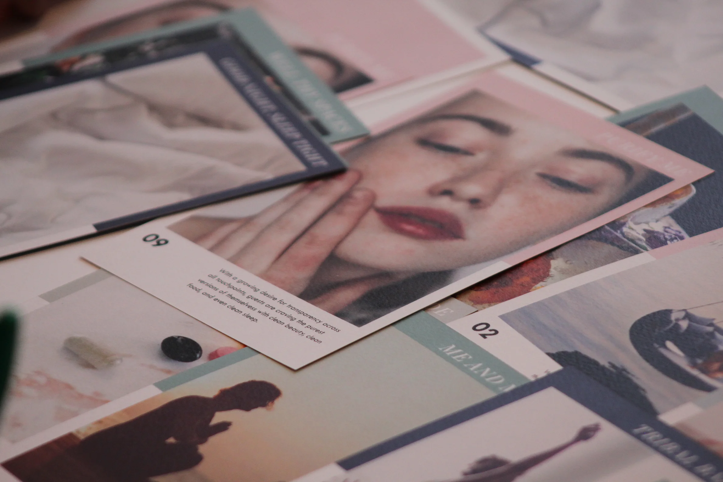 For the Future of Wellbeing co-creation session, our team wanted to examine ways in which health and wellbeing perspectives have shifted for our Luxury guest traveler. As part of the effort, I was tasked with creating a design identity for our collateral materials that could present our findings in an elegant but easy to understand way. Fully embracing the brainstorming/ workshop format I designed a packet of cards that the user could spread out across an entire table.